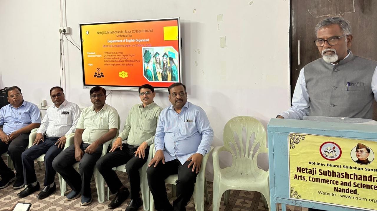 नांदेड : नेताजी सुभाषचंद्र बोस महाविद्यालयाच्या इंग्रजी विभागामार्फत आयोजित “करिअर घडविण्यात इंग्रजी भाषेची भूमिका” या विषयावर मार्गदर्शनपर व्याख्यान उत्साहात संपन्न झाले.