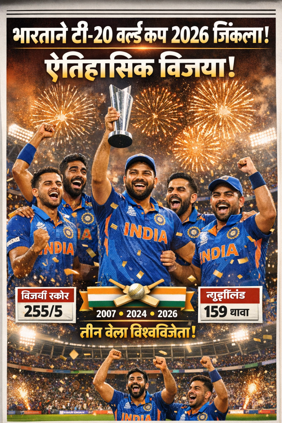 ⭐ एकूण तीन वेळा (2007, 2024, 2026) विश्वचषक चॅम्पियन बनला,