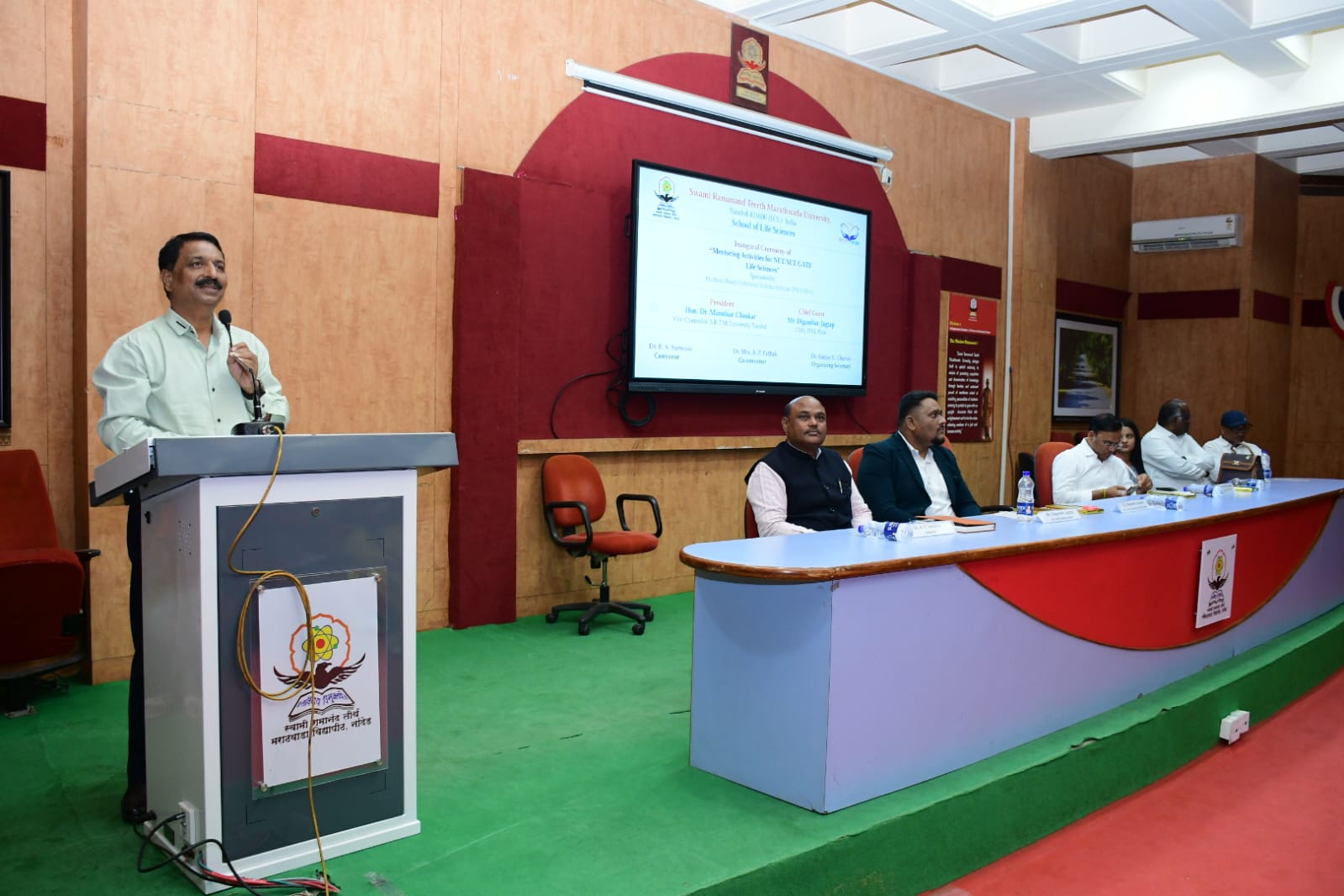 स्वामी रामानंद तीर्थ मराठवाडा विद्यापीठामध्ये पीएम-उषा यांच्या आर्थिक सहाय्याने आयोजित आठ दिवसीय नेट,सेट आणि गेट मार्गदर्शन कार्यशाळेचे उद्घाटन दि.११ मार्च रोजी विद्यापीठातील अधीसभा सभागृहामध्ये करण्यात आले. या कार्यशाळेचे उद्घाटन विद्यापीठाचे कुलगुरू डॉ. मनोहर चासकर यांच्या हस्ते झाले. यावेळी प्रमुख उपस्थितीमध्ये अधिसभा सदस्य युवराज पाटील हे होते.