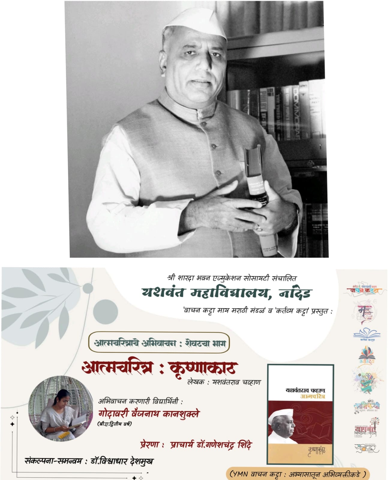 यशवंतराव चव्हाण हे आधुनिक महाराष्ट्राचे शिल्पकार. महाराष्ट्राचे राजकारण,समाजकारण,अर्थकारण घडवत असताना राज्यात साहित्य व संस्कृतीचीही जडणघडण व्हावी, याकडे त्यांनी विशेष लक्ष दिले.मराठी समाजमन विचार आणि विवेकाच्या बाबतीत संवेदनक्षम व्हावे यासाठी खास प्रयत्न केले.परंतु आजचे राजकीय, सामाजिक आणि सांस्कृतिक विश्वाकडे नजर फिरवली तर यशवंतरावांनी दिलेले पुढारलेपण महाराष्ट्र गमावून बसला आहे,हे दिसून येते आहे.अशावेळी तरुण पिढीने यशवंतराव चव्हाण यांचा वारसा समजून घ्यावा,त्यांच्या चरित्राचे डोळस वाचन करावे या हेतूने यशवंत महाविद्यालयातील वाचन कट्ट्याने