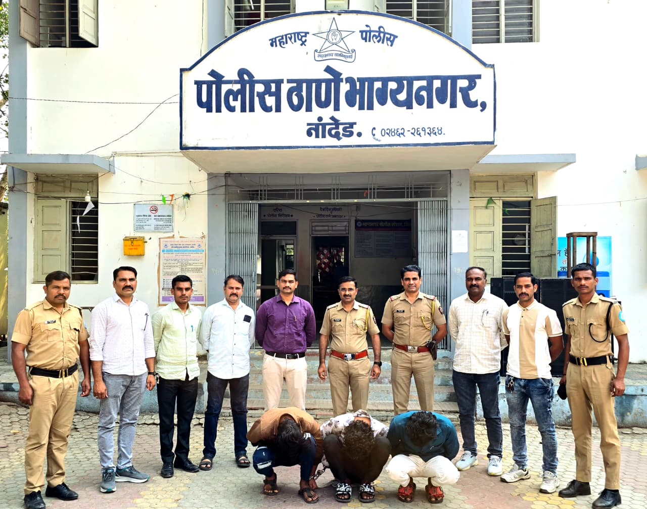 नांदेड, दि. 14 फेब्रुवारी – शहरातील भाग्यनगर पोलीस ठाणे हद्दीत घडलेल्या घरफोडी प्रकरणाचा छडा लावत भाग्यनगर पोलीस ठाण्याचे पोलीस निरीक्षक संतोष तांबे यांच्या मार्गदर्शनाखाली पोलिसांनी तीन आरोपींना अटक केली आहे. या कारवाईदरम्यान आरोपींकडून चोरीस गेलेली रोख रक्कम जप्त करण्यात आली असल्याची माहिती पोलिस अधीक्षक कार्यालयाकडून देण्यात आली.